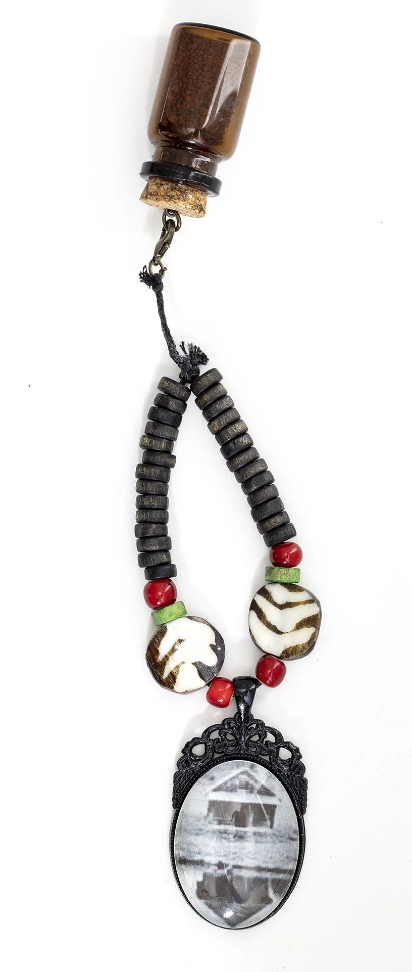 From Whence They Came, 2023 • Mixed media relic with house photo and soil in vessel • Length: 7 inches • NFS