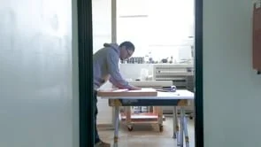 California-born and London, England raised, artist Matthew Eaton (b. 1974) is an abstract painter influenced primarily by nature and natural phenomenon. His works often reference geological patterns and formations, using methods and materials common to graffiti, graphic design and typography. Eaton's work has been exhibited, and is held in private collections, around the globe. Eaton was a founding partner in art galleries Library Street Collective and Contra Projects in Detroit. In addition, Eaton is the Program Manager of Red Bull Arts Detroit and partner in Uncommon Editions, both also in Detroit.
