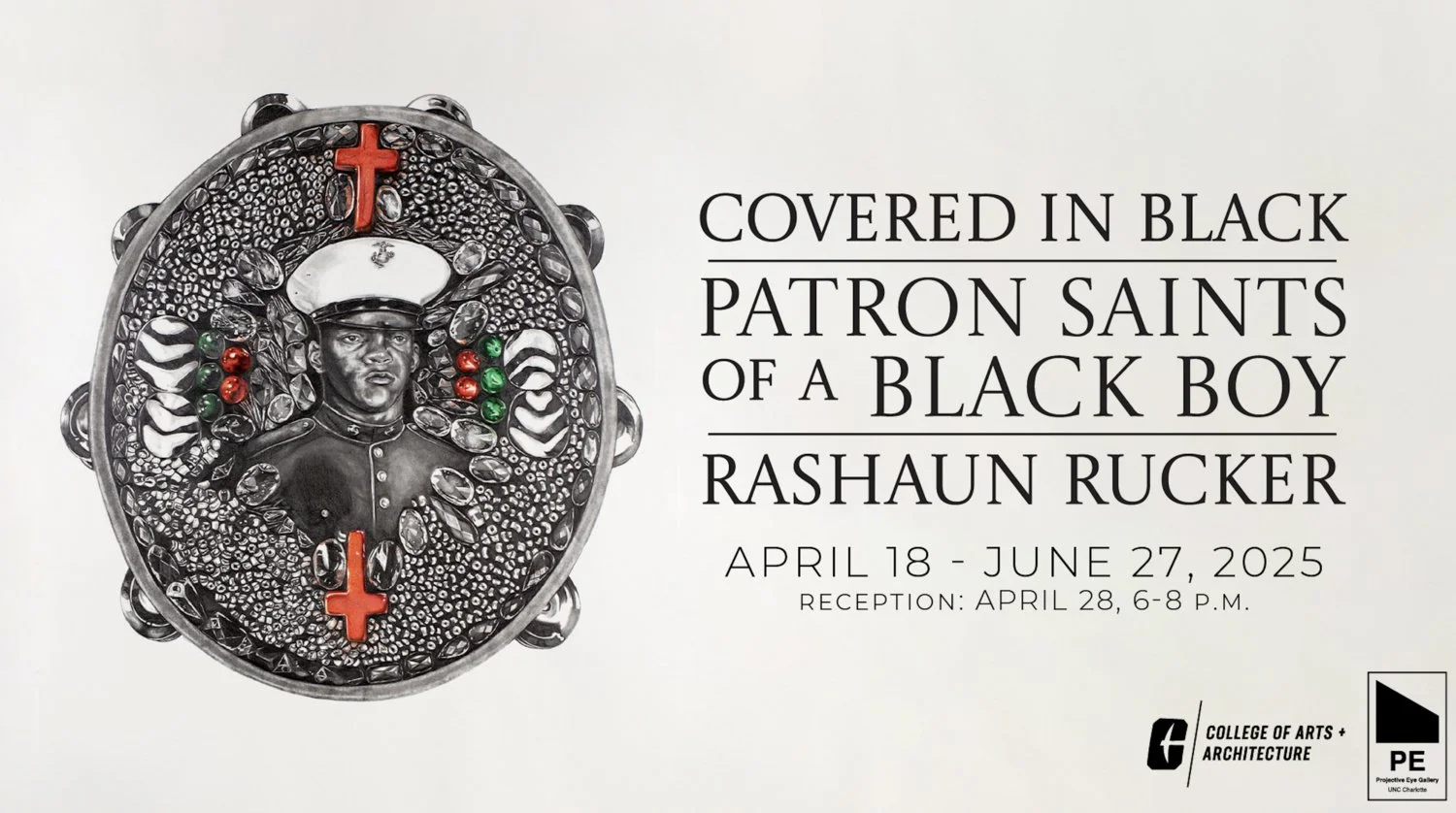 Curated by Yvonne Bynoe, Covered in Black | Patron Saints of a Black Boy presents work by North Carolina native artist Rashaun Rucker. This exhibition is the third in a series celebrating Southern Black Portraiture.