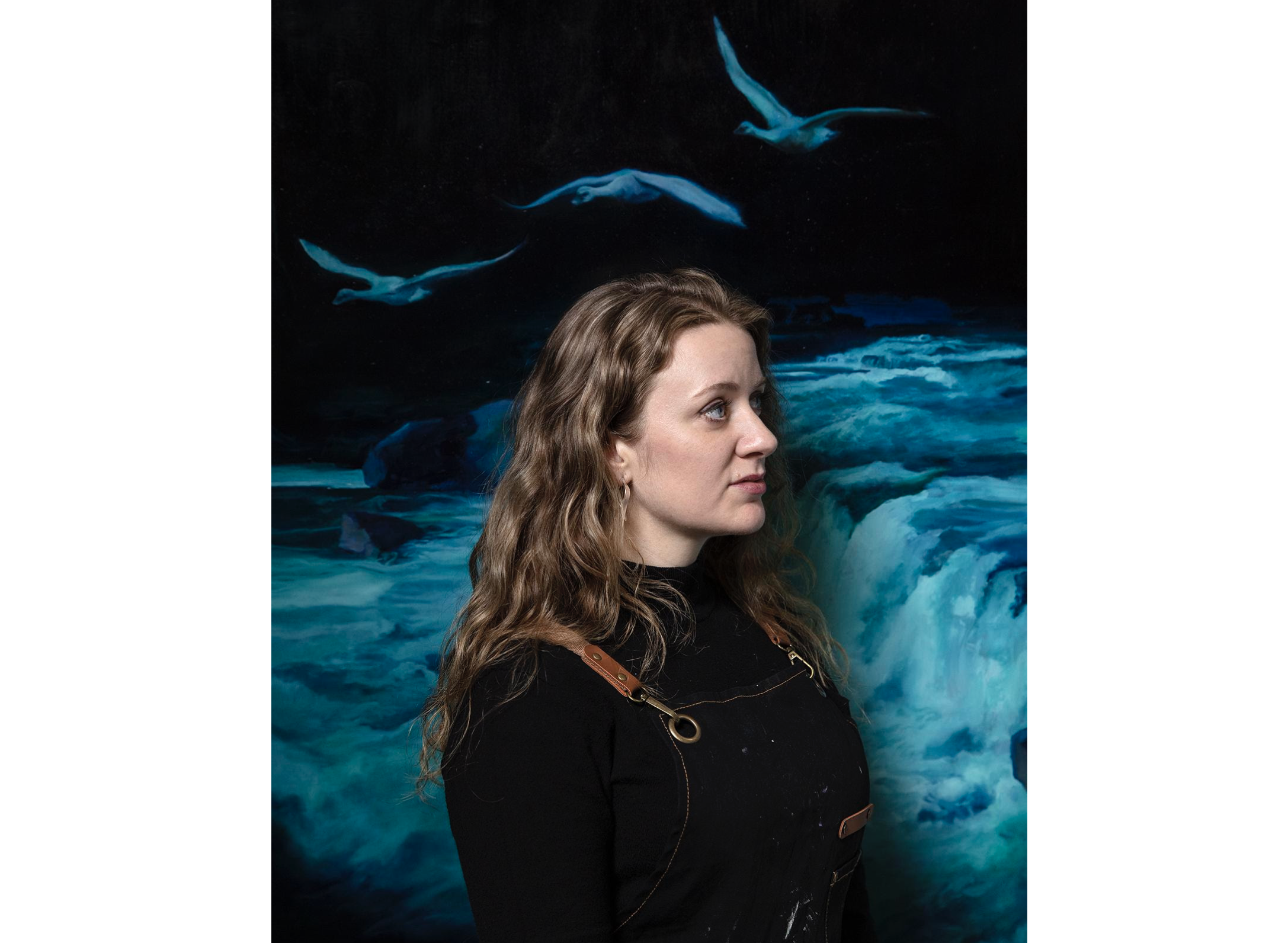 Marceline Mason is a Detroit-based painter whose work explores the psychological terrain of nocturnal landscapes, where natural forms become mirrors for inner states of mind. Her recent paintings focus on quiet, uncanny scenes of rivers and night waters, evoking the reflective tension between presence and disappearance. Through layered tone and atmosphere, Mason creates meditative spaces that invite reverence and introspection in response to the shifting natural world.