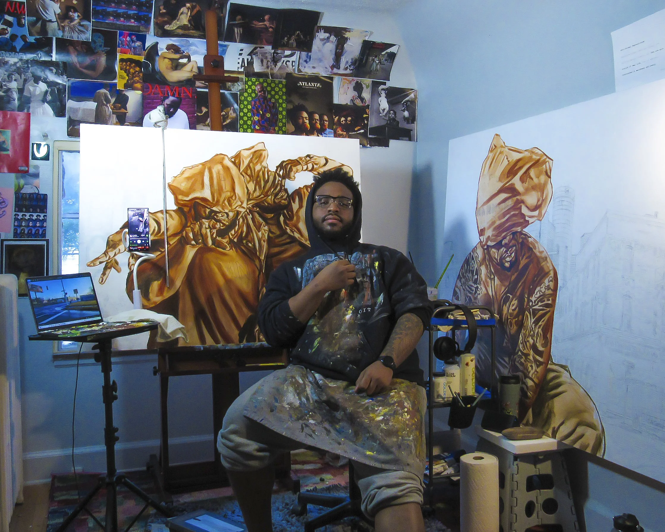 Andre Barker Jr. (b. 1997) is a figurative painter from Detroit, Michigan. He graduated summa cum laude with his BFA from Wayne State University in 2022 and earned his MFA from Columbia College Chicago in 2024. He currently serves as an Adjunct Professor in the James Pearson Duffy Department of Art, Art History & Design at Wayne State University in Detroit, Ml, and is represented by M Contemporary Art.