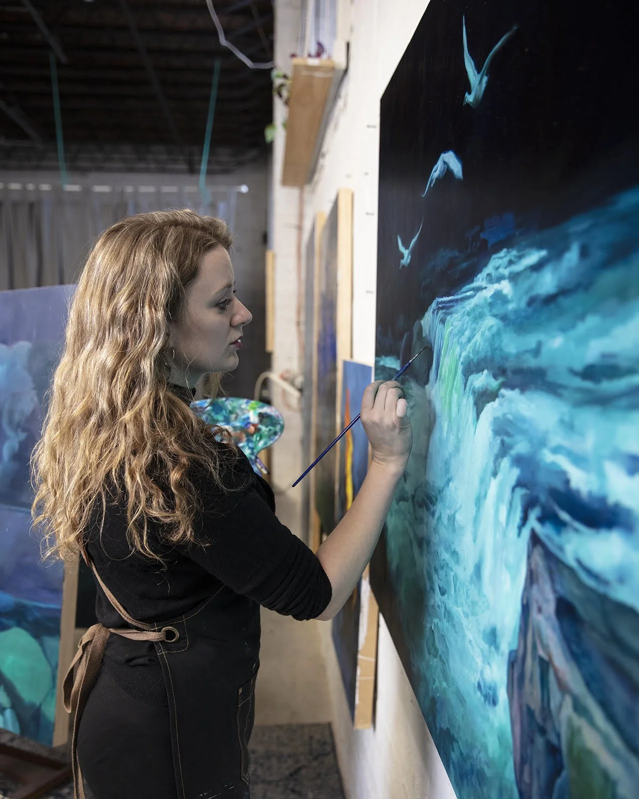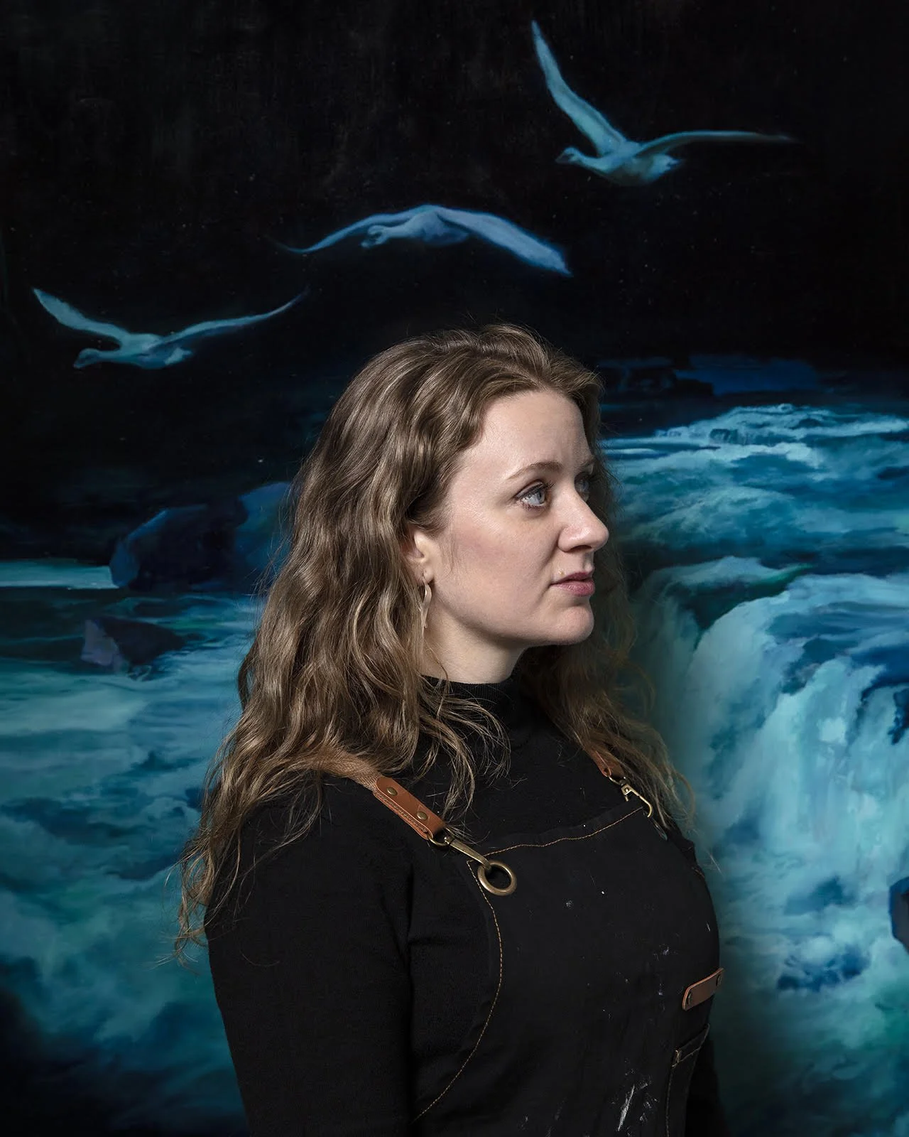 Marceline Mason is a Detroit-based painter whose work explores the psychological terrain of nocturnal landscapes, where natural forms become mirrors for inner states of mind. Her recent paintings focus on quiet, uncanny scenes of rivers and night waters that hover between presence and disappearance. Through layered tone and atmosphere, Mason creates meditative spaces that invite reflection on the shifting relationship between the natural world and interior experience. Mason received her MFA from Cranbrook Academy of Art and her BFA from West Virginia University. Her work has been exhibited at venues including Museum of Contemporary Art Detroit, Belle Isle Viewing Room, and M Contemporary Art. She has also received the Denis Diderot Artist Residency Grant at Château d’Orquevaux in France.