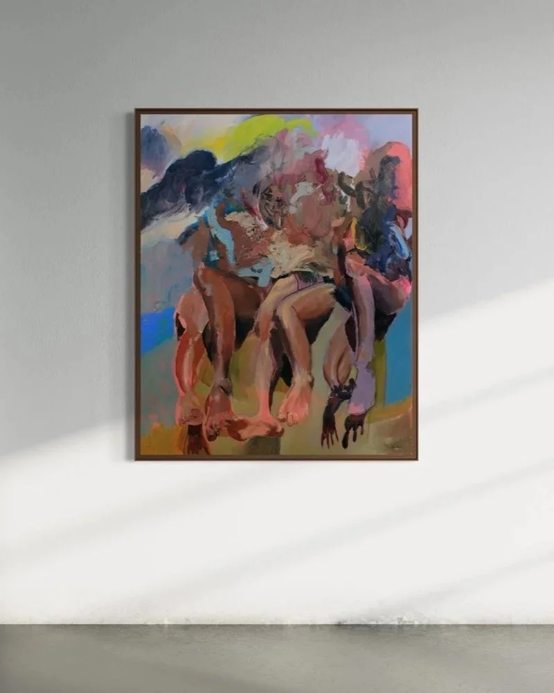 In this painting, Camp continues her inquiry into the figure of the “Black Venus,” unpacking inherited images of beauty shaped by European mythology, the male gaze, and the historical legacy of American chattel slavery. Her figures resist fixed form—bodies merge, dissolve, and re-emerge through expressive brushwork, suggesting both rupture and rebirth.